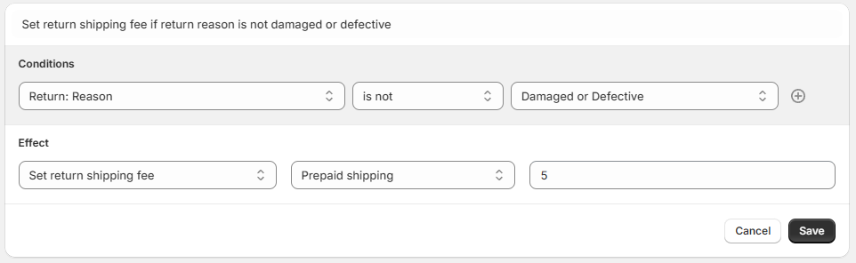 Set return shipping fee if return reason is not damaged or defective