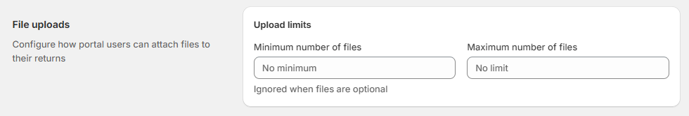 You can now specificy a minimum or maximum number of file uploads required in the customer return portal
