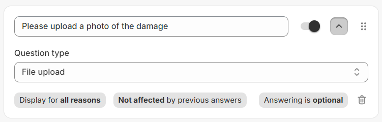 These changes will allow for even more flexible return workflows within the ReturnZap portal. For example, you can now prompt customers to upload images if they answer a previous question in a specific way.