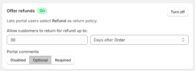 Additional configuration options are available for store credit and for exchange. See our related guides for details on how to set them up: