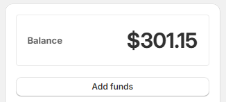 To manually add funds, click the Add funds button, enter a funding amount, and select your preferred method of payment.